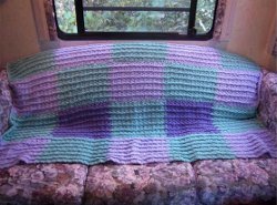 This is an afghan pattern that I would very happily use to make a decor item, to toss casually over a sofa or a bed. You know, just like in the magazines, lol! It is very beautiful although I will be using different colors to suit our home. I love that it is made in strips which are so much easier to join together than squares. The pattern is also very easy to make bigger or smaller, depending on preference.
