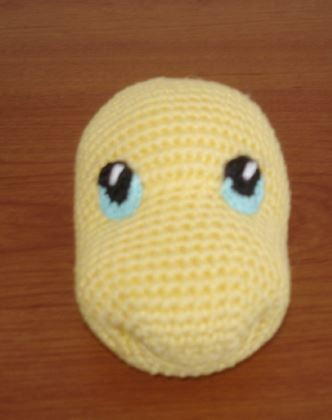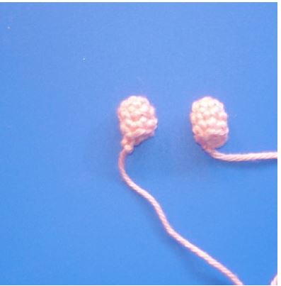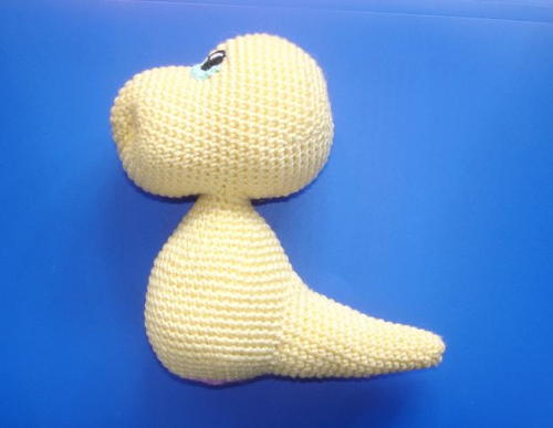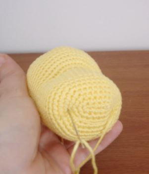 - Reaching the last stitch on the head, finish with 5dc and tie off hiding the thread inside the head.