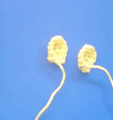 Rnd 3: Ssl st, 2sc in next st, 2hdc in next 2 stitches, 2sc in next st, slip stitch to next and tie off.