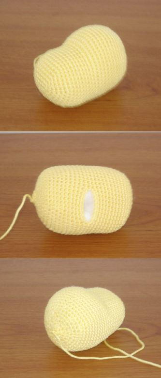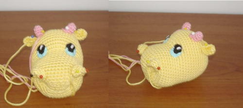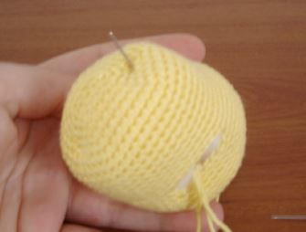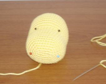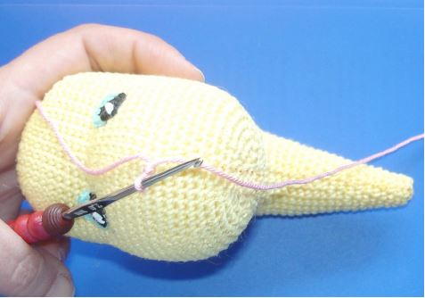 - Tie the yarn making knots inside the stuffing, cut and hide inside the head.