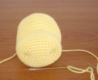 - Do the same with placing the legs. Place them right after 5th round. I have left 5 stitches between them but you try different ways to see which one suits you the best.