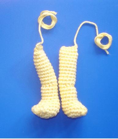 Stuff the leg nice and firm, flatten the last row and stitch through both sides making 8 sc across. Tie off and leave long end for sewing later. -
