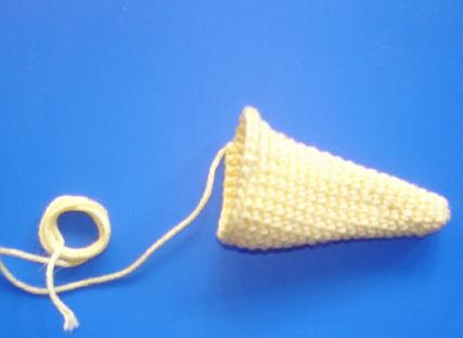 Tie off, leaving long end for sewing later. Stuff a little. -
