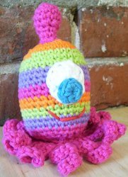 This is a very creative take on traditional amigurumi crochet! This little one eyed alien pattern is colorful and fun! This is one crochet toy your kids won't be able to wait to play with.