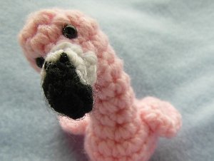 When I was a very little girl, but I couldnt get over how shockingly pink flamingos were, or that they seemed to eat with their heads upside down and completely under water. No wonder the Red Queen used them for croquet mallets. This is so cute, and Im going to work this as a toy for my new granddaughter, and a keychain for myself in honor of my Floridian roots.