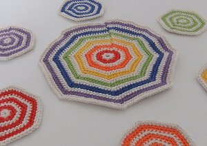 Use this free crochet pattern to make bright and vibrant drinks coaster set. You'll just love what they look like when you have the finished product. It's a great pattern for a beginner, so what are you waiting for? This set makes a great gift.