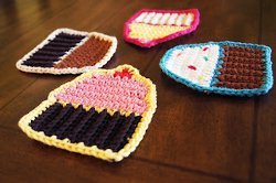 I wish these "Sweet Cupcake"coasters were somehow worked in a more rounded fashion. I appreciate the fact that someone sat down and through trial and error, created this pattern. I do! Somehow I think they probably look better in person. I just don't favor a squared off approach.. maybe the designer could come up with an updated version of the ADORABLE cupcake coasters?!