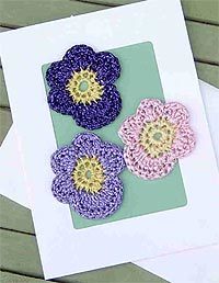 This card is great to give anyone. Tell someone you're thinking about them by using this free crochet flower pattern. Crochet some pansies to add to a plain card. An E hook size is required.