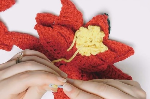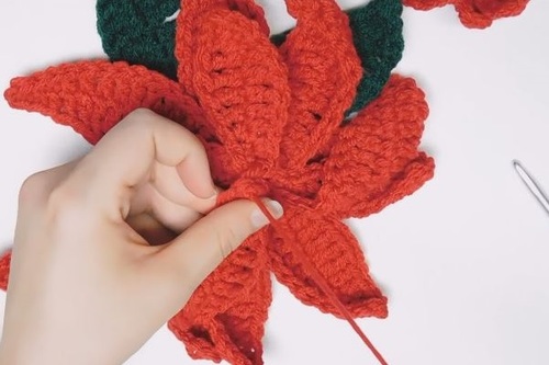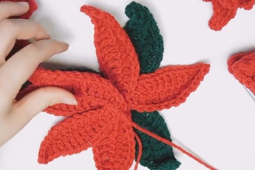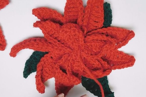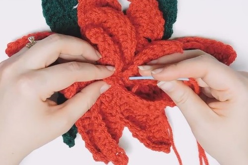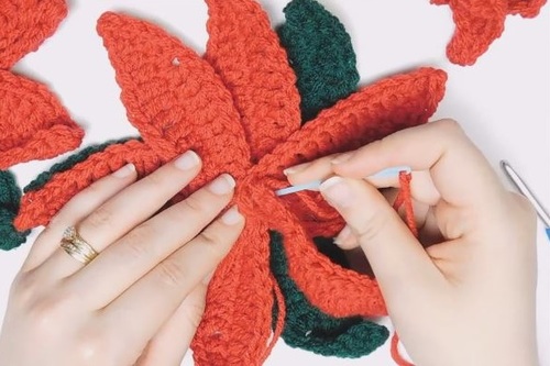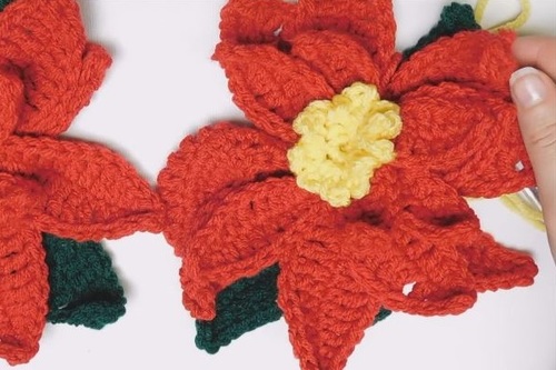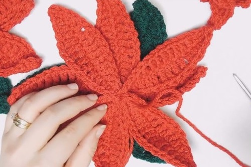Simply make all your different pieces for this poinsettia pattern and then stitch them all together for an overall fantastic giant festive crochet poinsettia flower. Follow along with the instructions or the crochet video to learn how you can create your own before Christmas.