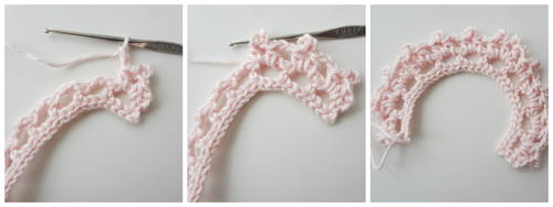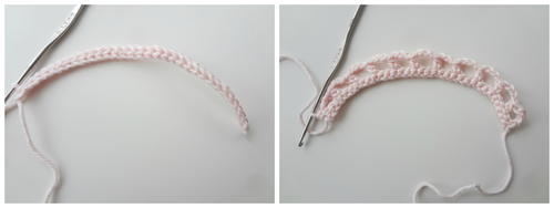 Row 3: ch2 and hdc1 in 1st ch, make a 3-ch picot and hdc1 in the same chain.