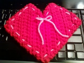 Get creative with some fun Valentine's day patterns like this corner of my heart gift pouch. Red Heart Super Saver yarn is used for this free crochet pattern. A video even shows you how to fold the material.
