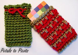 This is a bonus project because you get two different patterns! I love giving gift cards and I love getting them even more! Even though these easy to work projects were designed with the holidays in mind, dont let that stop you from using other colors for different occasions. I made the spiked version using primary colors for a birthday gift card, and the solid one in Steel Gray for a Fathers Day gift.