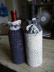 This is a nice idea. Perhaps between friends, whoever holds this crochet wine bottle cozy is responsible for bringing the wine to the next function.