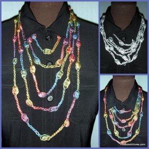 Dress up any outfit with this Pretty Puff Stitch Necklace. The bright yarn used to work up this crocheted necklace will certainly add a pop of color to any outfit. Being made out of yarn instead of beads, this crochet necklace is much lighter to wear than many store-bought necklaces. It's worked up using chain stitches, puff stitches, and a few slip stitches. There are three different lengths to choose from, so pick the one that looks best on you.