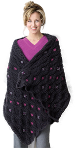 Now this is a wrap to use when you are ready to curl up and read a good book. There is no doubt that you will be warm when wearing this. I love the little design that is made after the project is finished. This wrap has a lot of texture also. Thanks for sharing this free pattern.