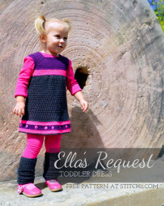 Just in time for the fall season, along with the new school year, this Favorite Fall Toddler Dress is sure to be a hit with your little girl and all her friends. The gray, pink and purple crochet colors look fabulous together; the florescent pink really pops. DIY clothing like this is worked up with the single crochet and half double crochet stitches, and then embellished with the cutest buttons you can find around town. You can even work up a matching pair of legwarmers (pattern not included).