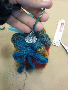 The initial photo of this project was confusing. Were these granny squares squished together, strung together, what? The actual instructions were even more confusing. Not the crochet part (pretty much everyone can do a granny), but the assembly. I understand attaching the squares to form a cube, but where does the square ornament come in? And why are yarn scraps inside the clear ornament?