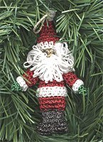 Using heavy metallic braid you can crochet this cute Santa crochet ornament. Give Santa a full beard this Christmas.