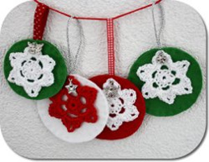 Make sure to hit the translate button when visiting the bloggers site because it is not in English. These ornaments are very cute. This is a hybrid project as it requires crochet plus a couple of other techniques in order to complete these ornaments. All in all they are still easy to make.