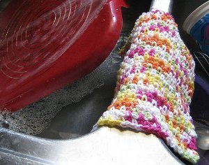 This is an easy crochet pattern that you can use your scrap yarn to put together. Instead of buying your dishcloths you can make your own. Lily Sugar n Cream yarn is used, but you can use any yarn you wish.