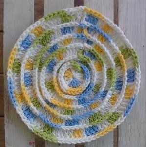 I love the look of this crochet dishcloth! It is so cheerful! It definitely looks good in a variegated yarn. The ridges on this dishcloth give it a wonderful texture which is useful for scrubbing dishes and countertops. If you need help in making circles, check out YouTube for videos on this technique.