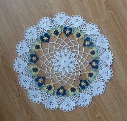 The Pansy Doily is a beautiful addition to your kitchen. Simple crochet patterns allow for maximum enjoyment of the craft, so get started today! Requires a 1.75 mm hook.