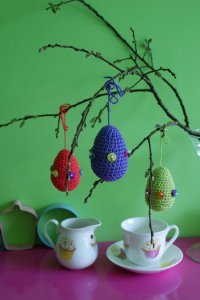 Fill up Spring baskets with Bright Crochet Eggs. These brightly colored Easter eggs are worked up with a single crochet stitch. Add buttons and beads to decorate these little treats!