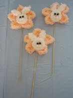 I wish I had seen these earlier! Ill definitely be adding these to my front door Easter wreath next year. Both the faces and flowers are easy to work up, and the designer has included a download for the project. The original project calls for bulky yarn and a big hook, but you could make the same pattern with thinner yarn for a charming little appliqu.