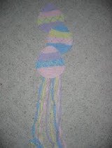 Ive been looking for something new for my front door, so I am seriously considering this project. Working it up in worsted would make it weatherproof. Each egg finishes at about 9 inches, so by the time all three are stitched together, the entire project would be approximately 24 inches long. Im not fond of the overlay stitches that form the V on the eggs, so Ill probably change that feature.