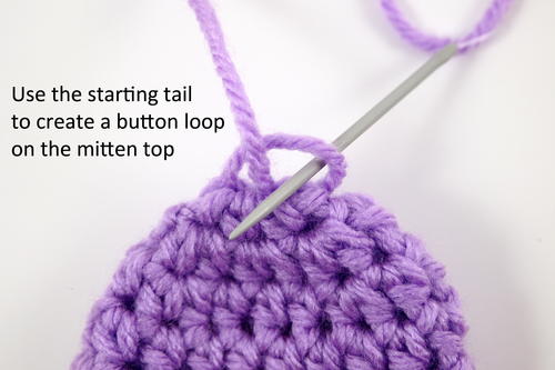 For placement of the mitten top, button and how to make the button loop, see the photos. -