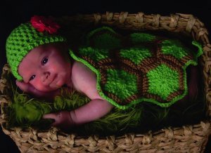 The Infant Turtle Shell Photography Prop is just what you need to take your newborn's first pictures with. If you know how to crochet a blanket and you've worked with motifs then you'll find this crochet design easy to work up. Baby crochet patterns always make great photo props especially if you match this turtle shell with a matching hat. Stick with the green and brown crochet colors or get gender specific if you wish.
