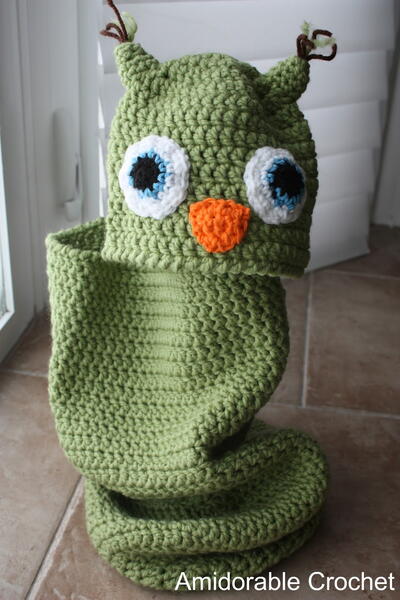 Crochet baby cocoon patterns are great gift ideas to give that expectant mom. Make this adorable Owl Baby Cocoon to keep baby comfy and cozy - it just takes some super bulky yarn and a J crochet hook. This intermediate project is worked in the round, which makes for some fast crocheting. Your baby will look picture perfect in this little getup. It's a hoot!
