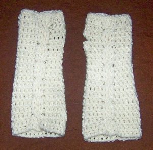 I created a pair almost like this only I made mine with two cables on each arm and I made them longer so they cover your whole arm. I also used fishermens wool.