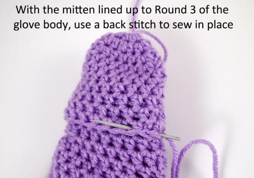 Thumb - If leaving the thumb uncovered, skip these instructions and work a round of SC in a contrasting color.