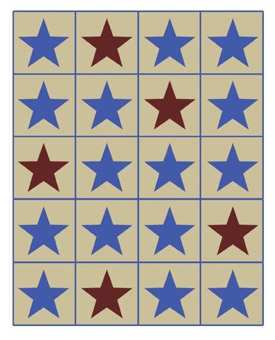 Using B for C Stars and C for B Stars, whipstitch a Star to the center of each Square.