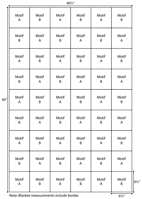 Arrange motifs into 9 rows of 6 motifs each, alternating Motifs A and B (see assembly diagram).