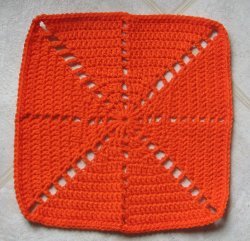 This Citrus Spray Afghan Square is a 12 inch square made with Lion Brand Fun yarn in a bright orange color. Make many squares and turn it into a crocheted afghan or keep it as a single square for a dishcloth, potholder or any kitchen item.