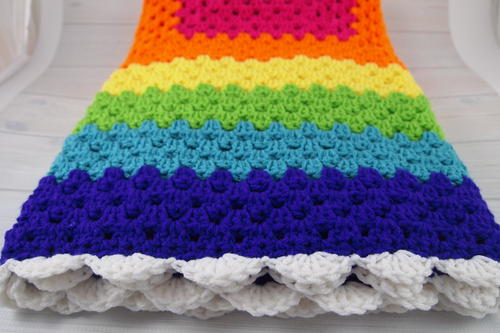 Such a pretty blanket for a baby or a nursery. Would make a very nice baby shower gift. It truly looks like a rainbow with all of the bright colors. Since this is essentially just one big granny square, it will be so easy to make and a great beginner afghan for a newbie.