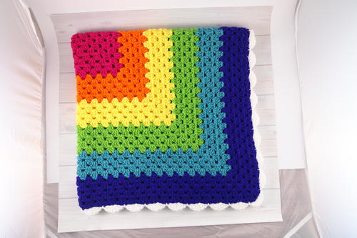 tGranny squares afghans are always popular. They are relatively easy to make as well. This "rainbow" afghan should be a hit since it is so colorful. You can make one in the rainbow colors and then make another one with different colors. They are very versatile as well. Thank you.