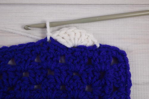 Round 4: In first space make [alt-ch, 2 dc], *in corner ch-2 space make [3 dc, ch 2, 3 dc], make 3 dc in each space to next corner*, repeat from * back to start, sl st to join in top of alt-ch and turn (48 dc, 4 ch-2 spaces)