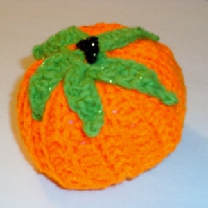 Knot and cut long tail. Thread Yarn Needle with tail and attach to top of pumpkin (Hiding the closure of the pumpkin). Knot and bury tail in work