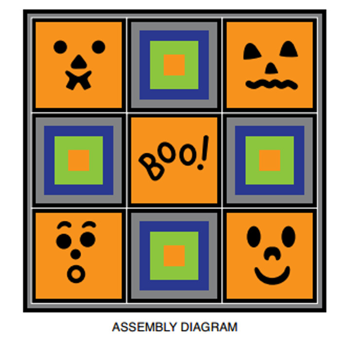 This is probably my favorite Halloween throw. Its so simple to work up, and because its a Red Heart Yarns project, theres a free download that can be accessed here http//www.redheart.com/free-patterns/pumpkin-face- == throw The squares are worked first, then the features for the pumpkins and the lettering are added last. A wonderful project using only a few colors of yarn and basic stitches. Easy peasy!
