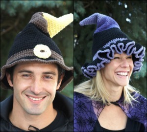 Trick or Treat as a couple with these Festive Witch and Wizard Hat Halloween crochet patterns. As soon as you work these up, you are on your way to fantastic homemade Halloween costumes that go absolutely perfectly together. The women's pattern has a cute ruffle to distinguish itself while the men's is a little simpler. Use the purple and brown colors or add your own unique flair. Your Halloween crochet costumes are sure to be the best on the block! Throw a costume party to see how your witch and wizard hats compare.