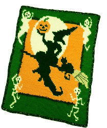 This if the ultimate throw for the ultimate Halloween fan. I love this haunted Halloween afghan but I am not one to put out a lot of decorations during Halloween. Having no kids at home it is one of those holidays that just tend to pass us by until the trick or treaters come a knocking.
