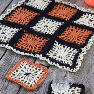 Looks great as a coaster or sewn together in a mat. I don't see a lot of designs for Halloween crochet so this is great. The skull edging is really unique, it's the perfect finishing touch. This looks like it will take some time to do, so I'm going to get started in September!