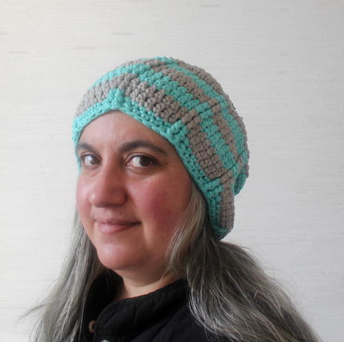 I really like this aqua ridge slouch hat. Aqua is one of my favorite colors and I really like the pom pom at the top. This particular hat is made from the top to the brim. Not all hats are made that way and with each pattern I notice I like from crown to brim more. I am still not a fan of color change so I will probably opt for a single color or use a gradient / ombre yarn. Thanks for sharing the pattern.