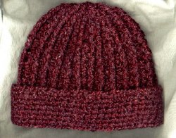 Crochet an attractive ribbed hat with folded brim to keep you warm through the winter. This crochet hat pattern features the front post stitch for an interesting texture.