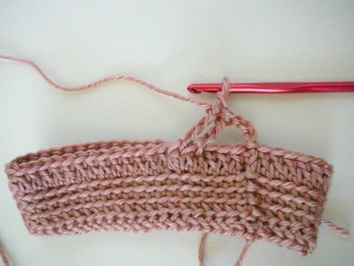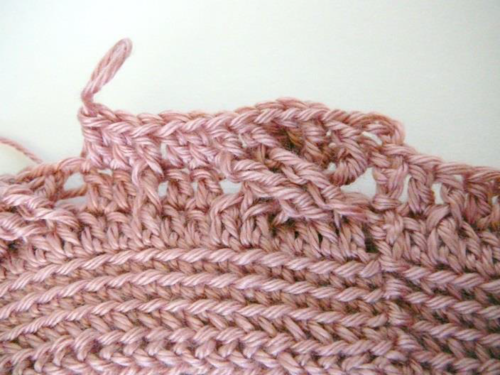 The following row has the first cable st in it. Please refer to these photos to help with stitch placement.