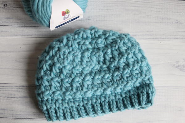 "This winter beanie is a snug fitting beanie. It is made with a super bulky weight yarn. The yarn used is a roving yarn, 100% wool by Sugar Bush yarns. This yarn may be substituted for any that is super bulky weight. You will need approximately 75 yards for this project. The hat is constructed from the bottom up. The ribbing of the hat is worked in rows, while the hat body is worked in rounds."