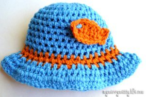 Red fish, blue fish, goldfish! This cute "Go Fish" Hat is the perfect summertime accessory for the baby fisherman in your family. Your little boy will look adorable when he wears this crochet hat while playing outside. Plus, it's a great way to keep the sun out of your child's face. This crochet hat pattern is designed to fit a baby about 6 to 12 months old. To make it bigger, simply add more increasing rounds to the crown, and take away an increasing round to make it smaller.